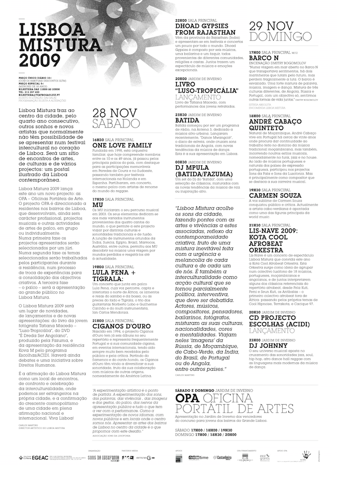 “Lisboa pode ser uma cidade multicultural, mas nem sempre a sua programação cultural é tão multi quanto isso. Uma das raras excepções é o Festival Lisboa Mistura”.